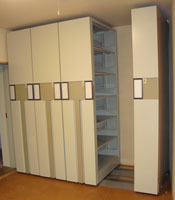 オフイス・学校・図書館にある丈夫な業務用移動棚をご自宅にも設置できます。ご自宅にて大量に増えた、ご自宅の書籍・CD・DVDなどを、設置するお部屋の内寸法や、使用用途に合わせて,設置するシンプルでかつ機能性に優れた収納用移動棚をご提案させて頂きます。
