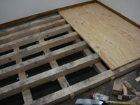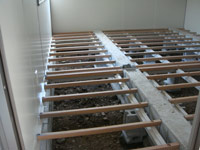 床補強工事 例2大引き角材を格子状に積み重ねた下地補強