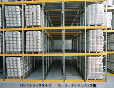 ローラー式プッシュバック棚(パレット収納プッシュバック棚) 受注生産品