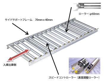 独自のフリーコンベアーを採用した密集タイプの流動棚のご案内です。